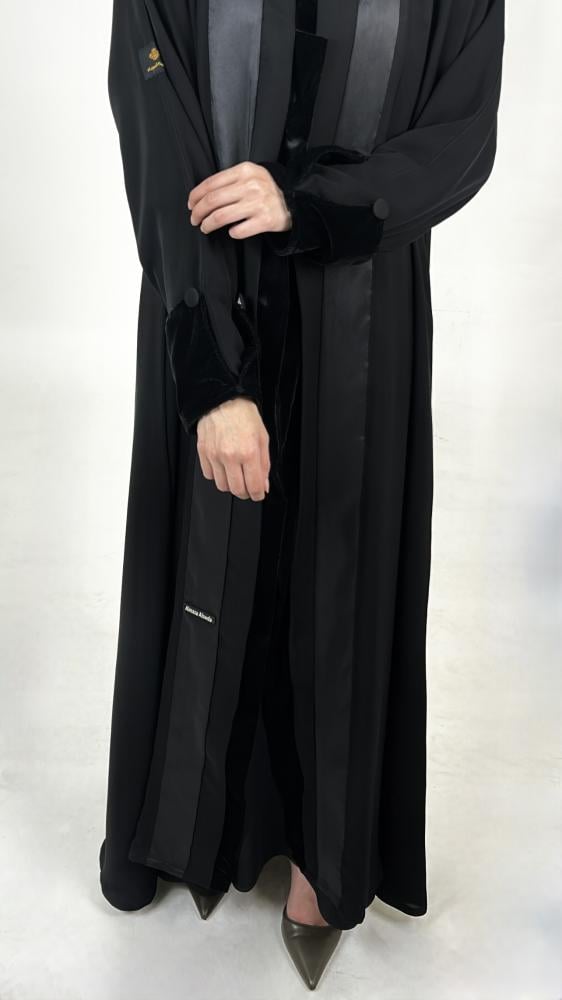 اسم المنتج : عبايه نص كلوش لف صدر وكم قطيفة -القماش ; كريب و(أكمام قطيفة أنيق) -code:86708
