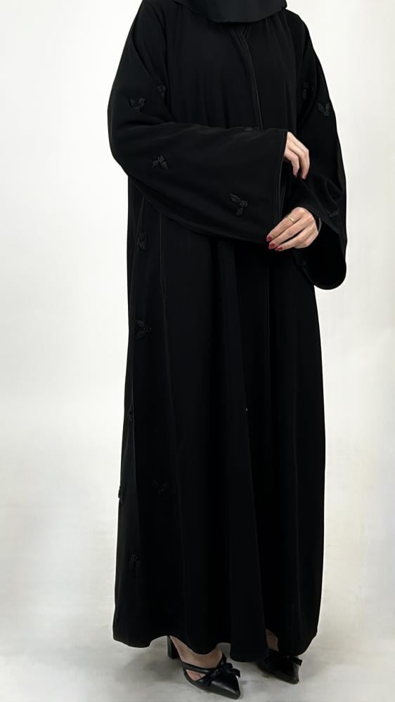 اسم المنتج :عباية كلوش بقفله لف خيوط ورد باللون الأسود- code:88871